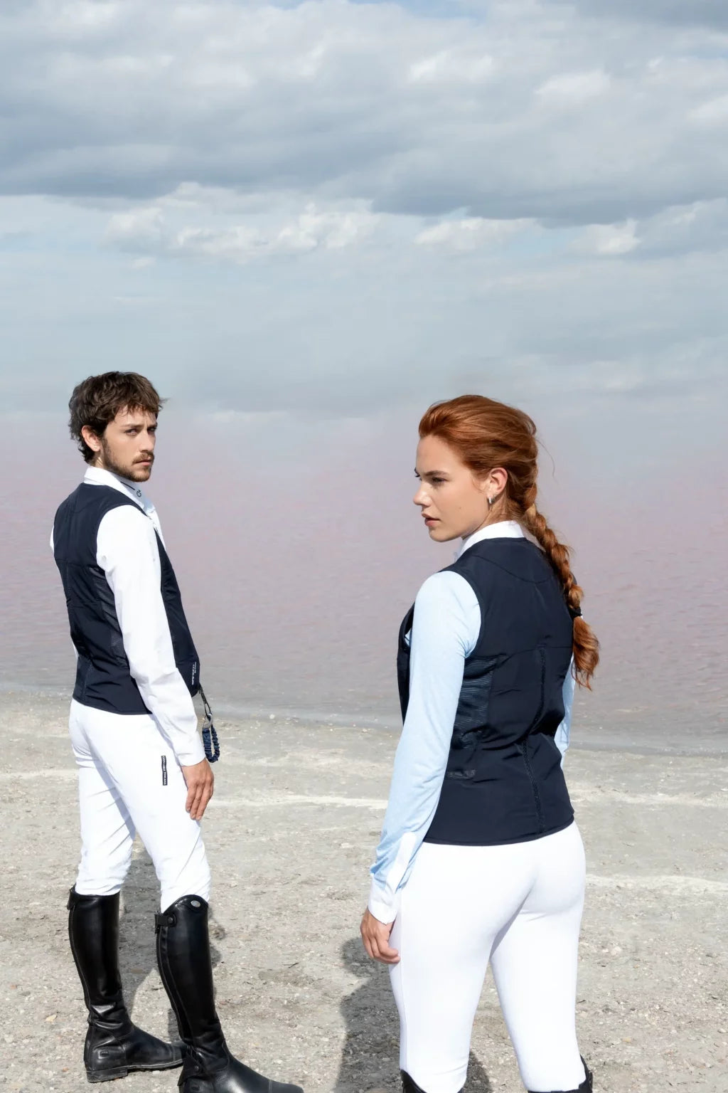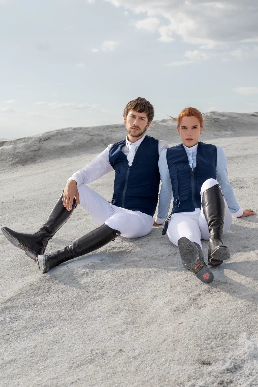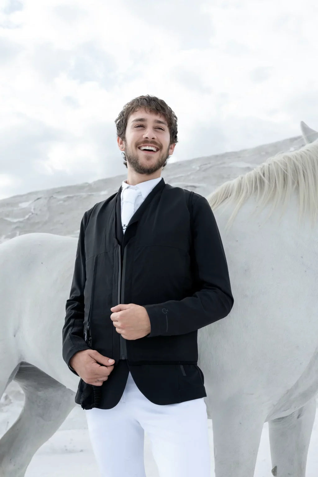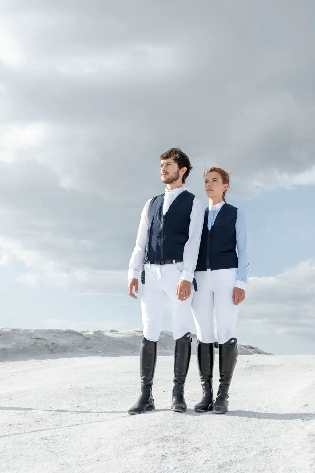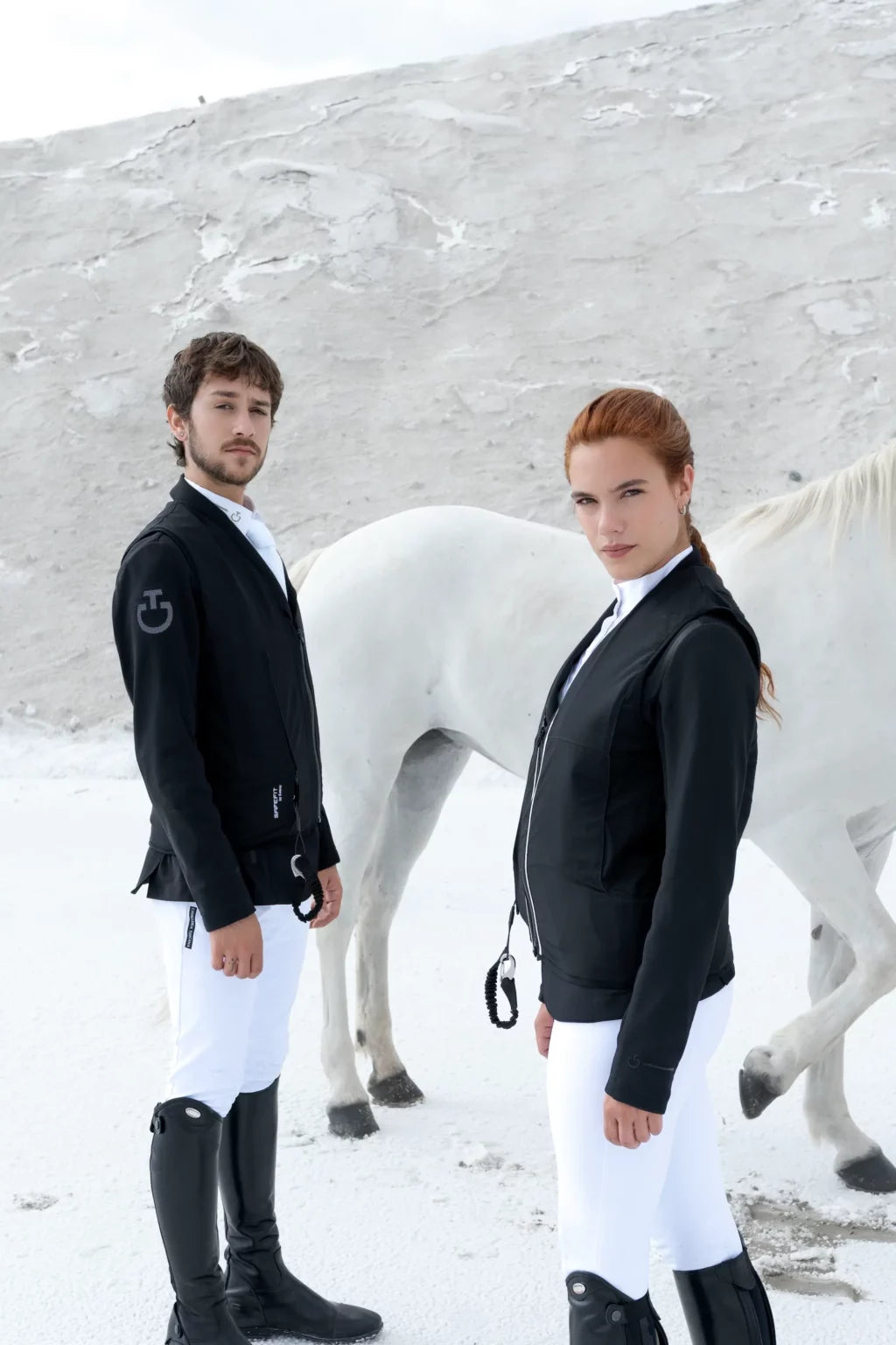 Made from breathable, flexible materials, the SAFEFIT vest offers a slim, ergonomic fit that layers comfortably under a competition jacket. Its adjustable design ensures a secure and personalized fit for riders of all disciplines, from schooling to show day.