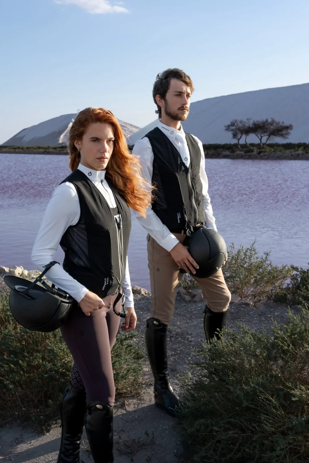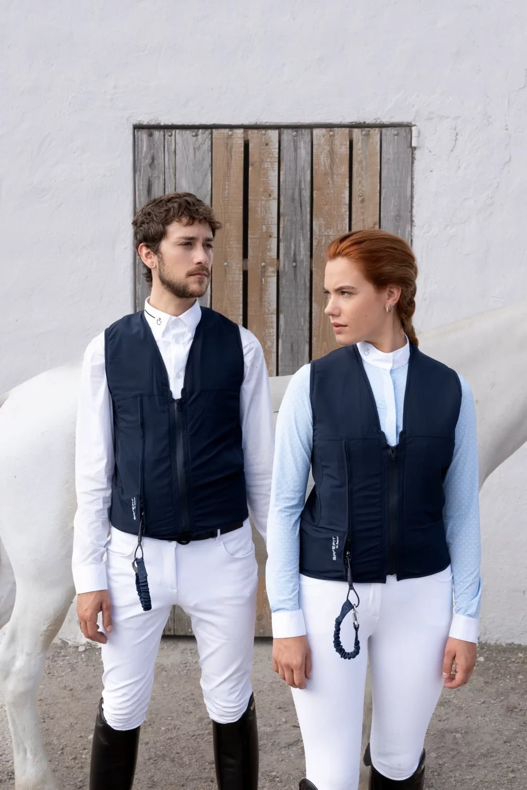 The Seaver SAFEFIT Airbag Vest is a lightweight, discreet safety vest designed to protect riders without compromising style or mobility. Engineered in France, this mechanically triggered airbag deploys in less than 100 milliseconds upon detecting a fall, instantly inflating to protect the spine, neck, chest, pelvis, and vital organs.